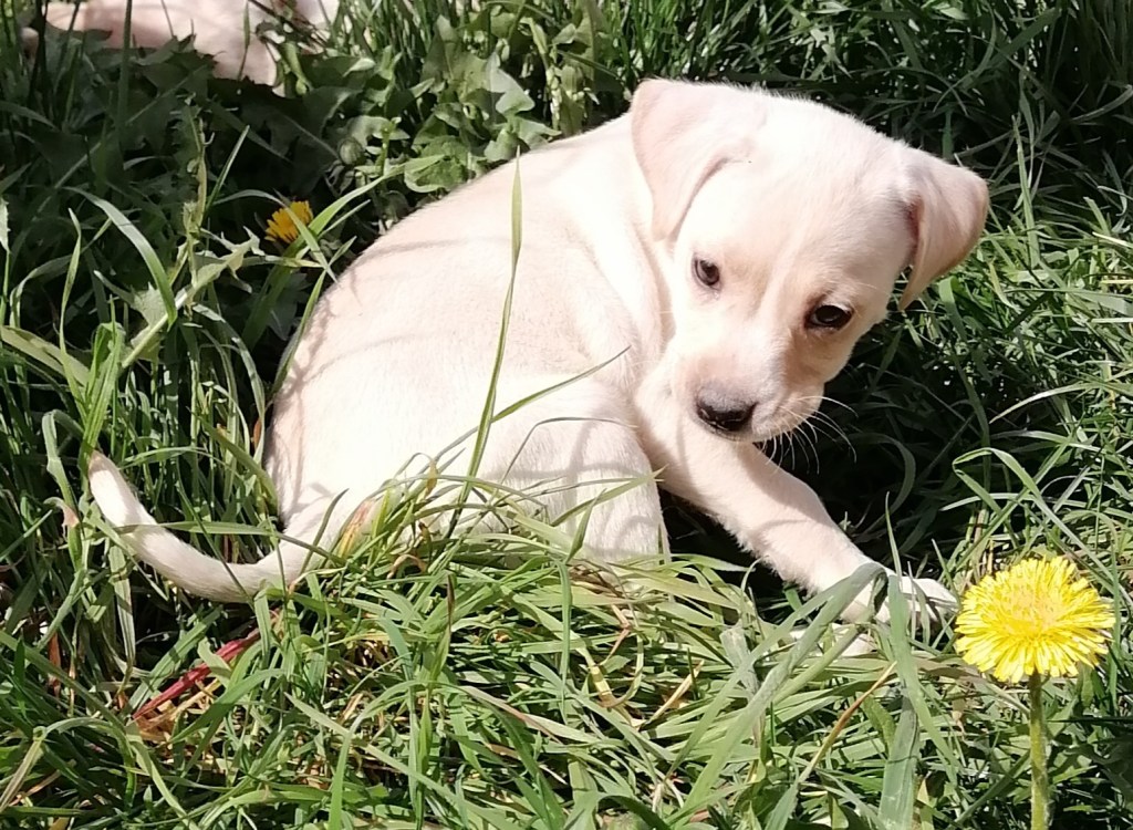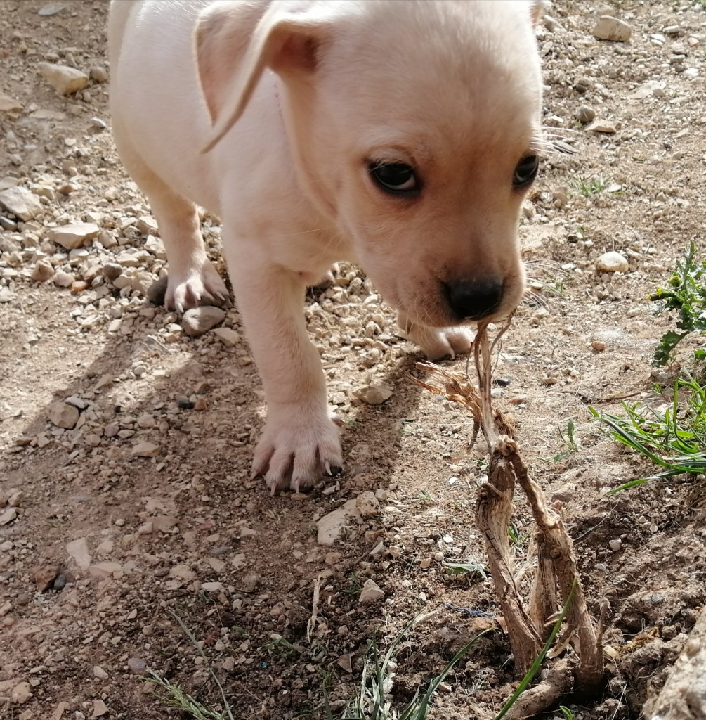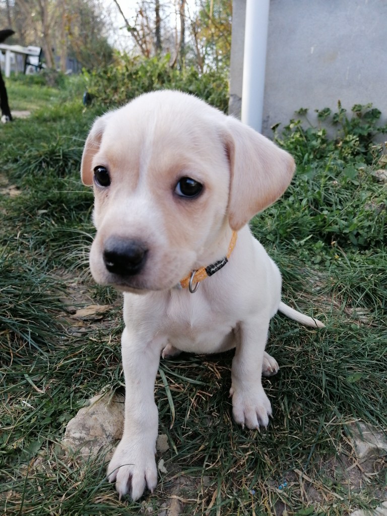 Tess petite croisée labrador née le 1 février 2022 d’une fratterie de 12 chiots, sociable chiens, chats. Education à prévoir, stérilisation obligatoire a ses 6 mois.