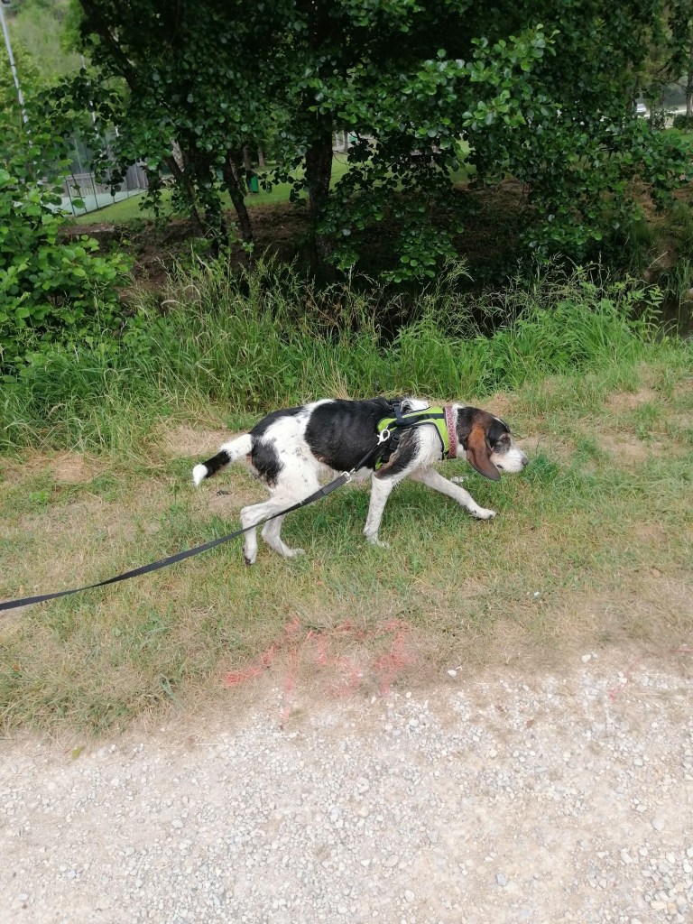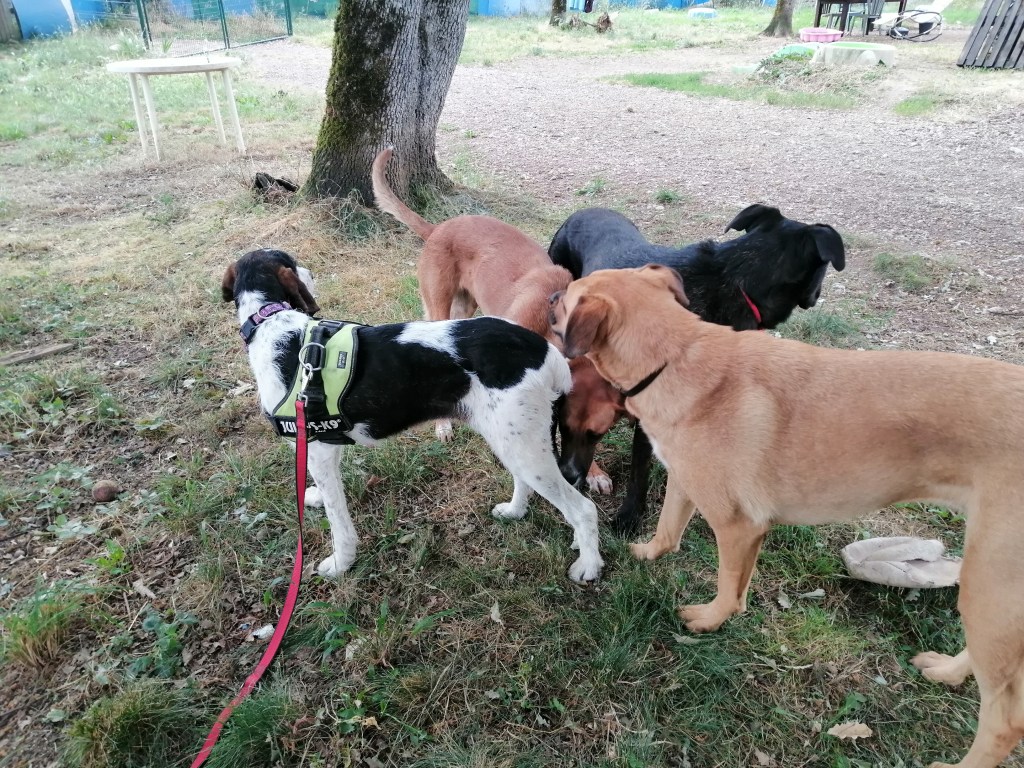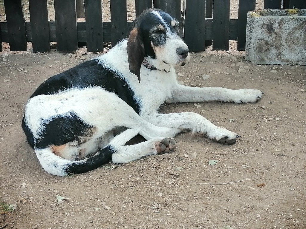 Ce que l’on peut dire de Mousse aujourd’hui, c’est qu’elle est entièrement OK chats, congénères, poules en liberté, n’a pas l’air fugueuse. Très timide face à l’humain. Pour l’instant nous pensons qu’elle récupère de sa cavalcade.