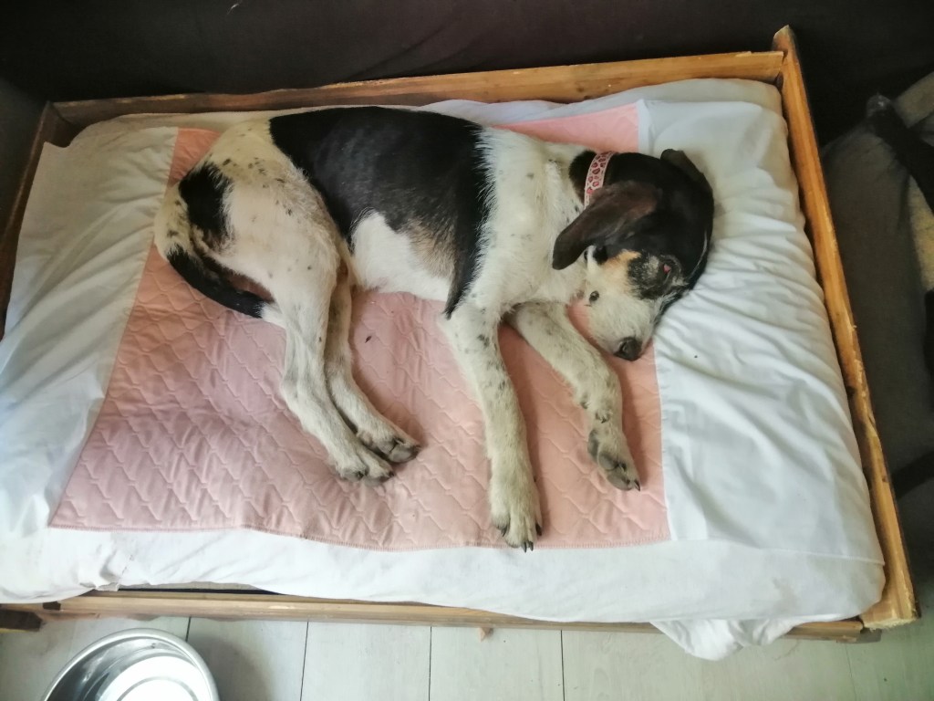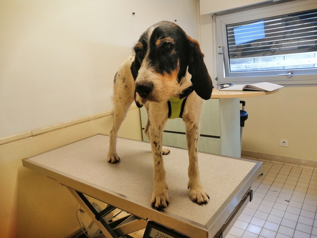 Mousse vivait comme une chienne errante sur une ferme. En guise de dodo un peu de paille dans un hangar. Pas stérilisé, pas vacciné, pas déparasité par son propriétaire, celui-ci étant décédé, nous avons été sollicité par la secrétaire de la clinique vétérinaire de Prayssac pour intervenir et la mettre en sécurité.