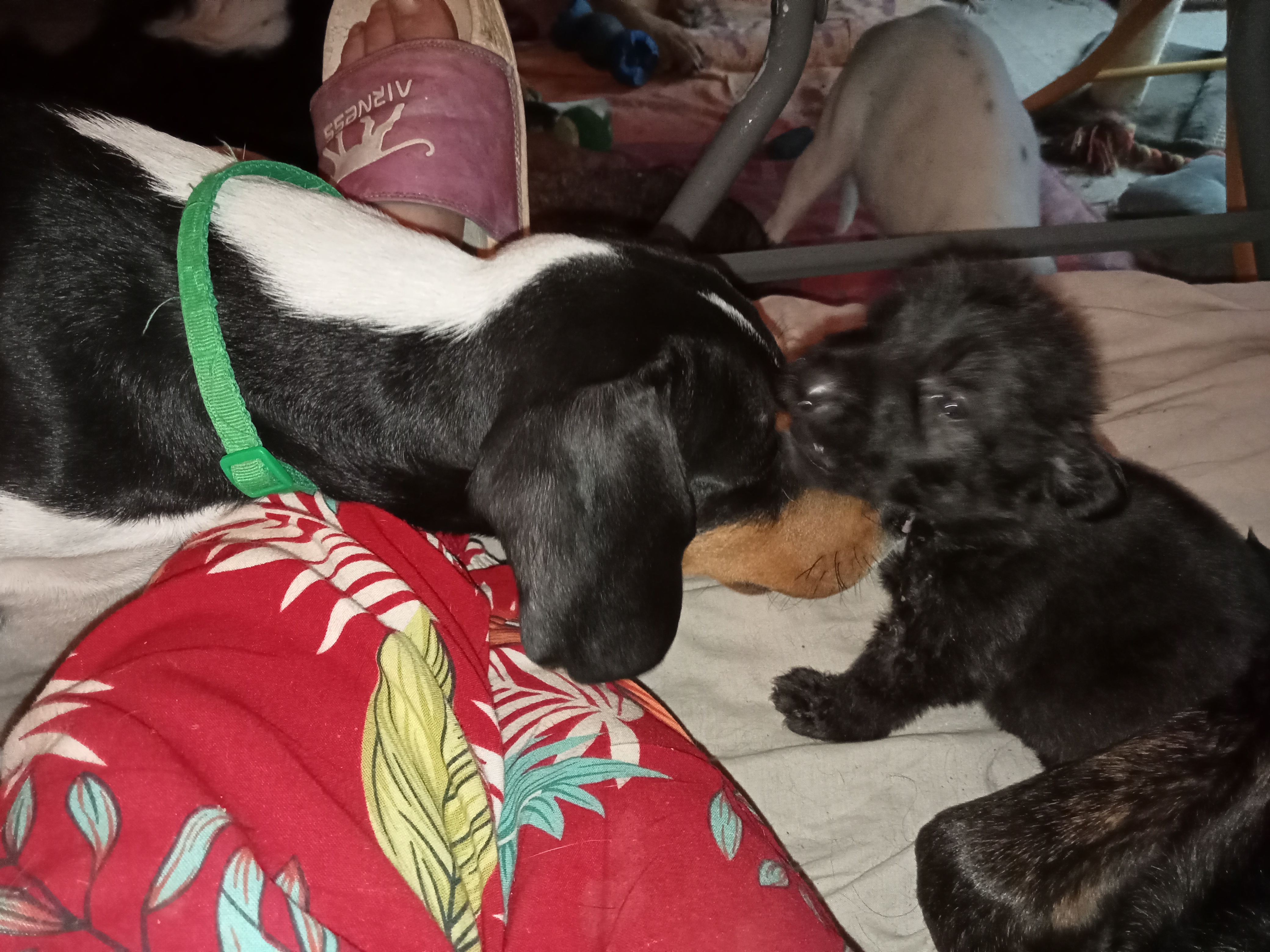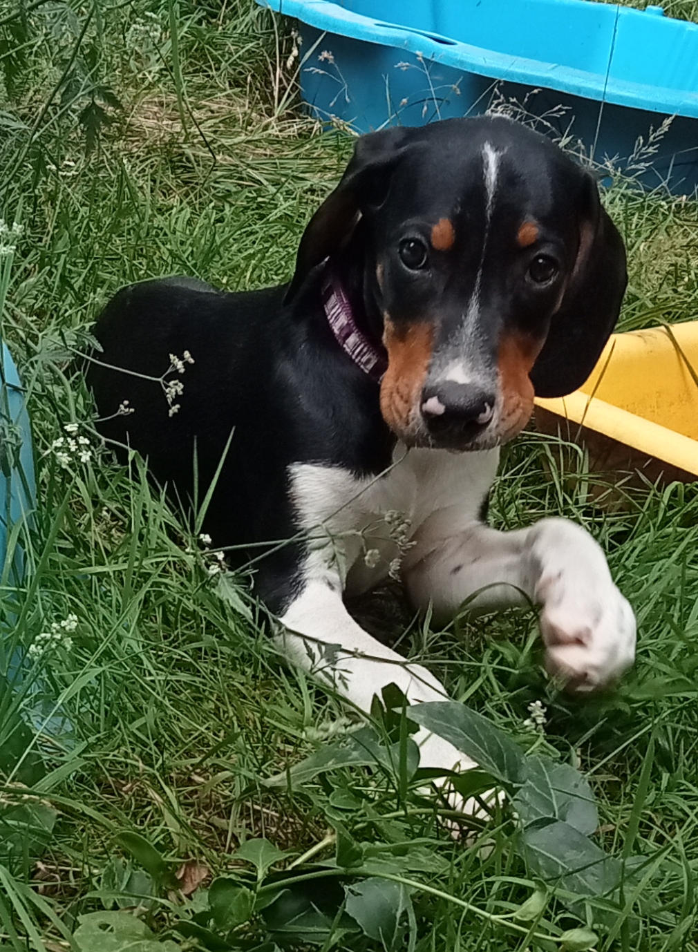 Vénom né le 31 mars d’un papa setter et une maman croisé. Vénom est un chiot très affectueux, joueur. Il fera le bonheur d’une famille qui aura du temps pour lui faire des câlins, poursuivre son éducation, qui fera des promenades quotidiennes. Il est socialisé congénères, chats, poules en enclos et humain. propreté en cours d’acquisition. marche en laisse et harnais. adoption uniquement pour chien de compagnie. Il est identifié, vacciné et déparasité, castration a ses 6 mois obligatoire.