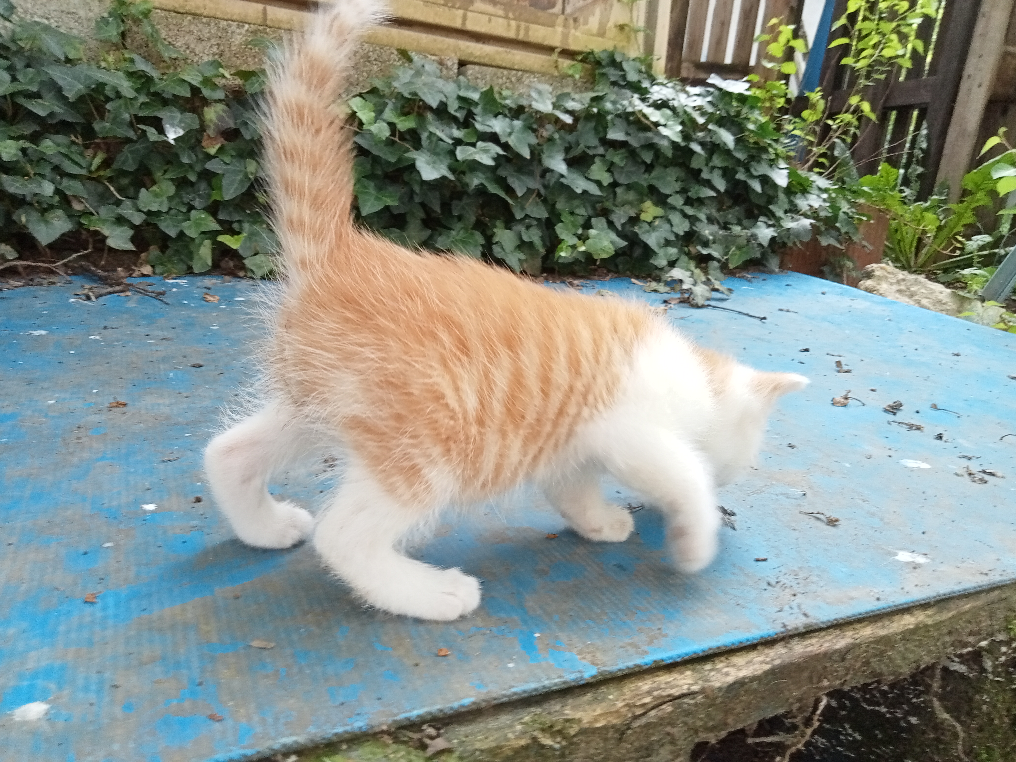 Vorace âgé de 2 mois a été trouvé a côté d’une poubelle alors qu’il avait seulement 3 semaines. Socialisé avec 2 autres chatons plus âgé et 3 chats adultes ainsi qu’avec des chiens. Il est maintenant prêt a rejoindre une famille adoptante. Il est identifié, vacciné et déparasité, castration obligatoire a ses 6 mois. Il est vif, joueur et intrépide. Il utilise parfaitement la litière.